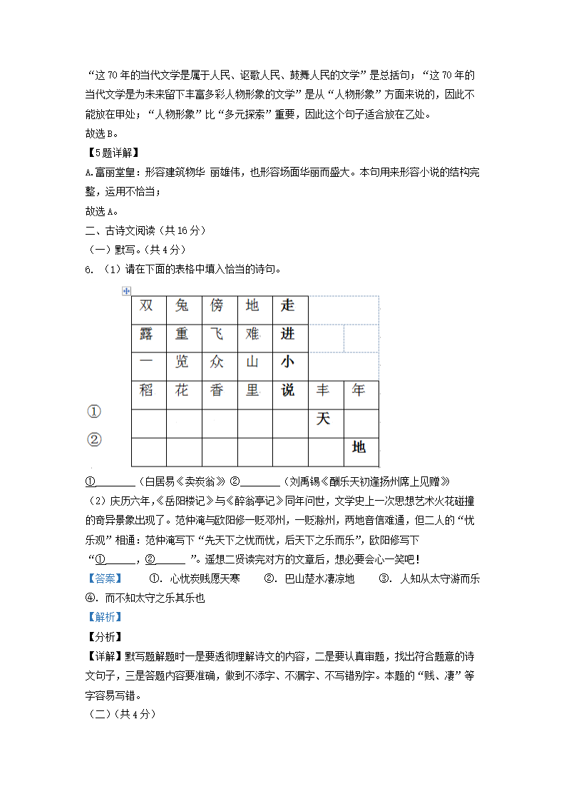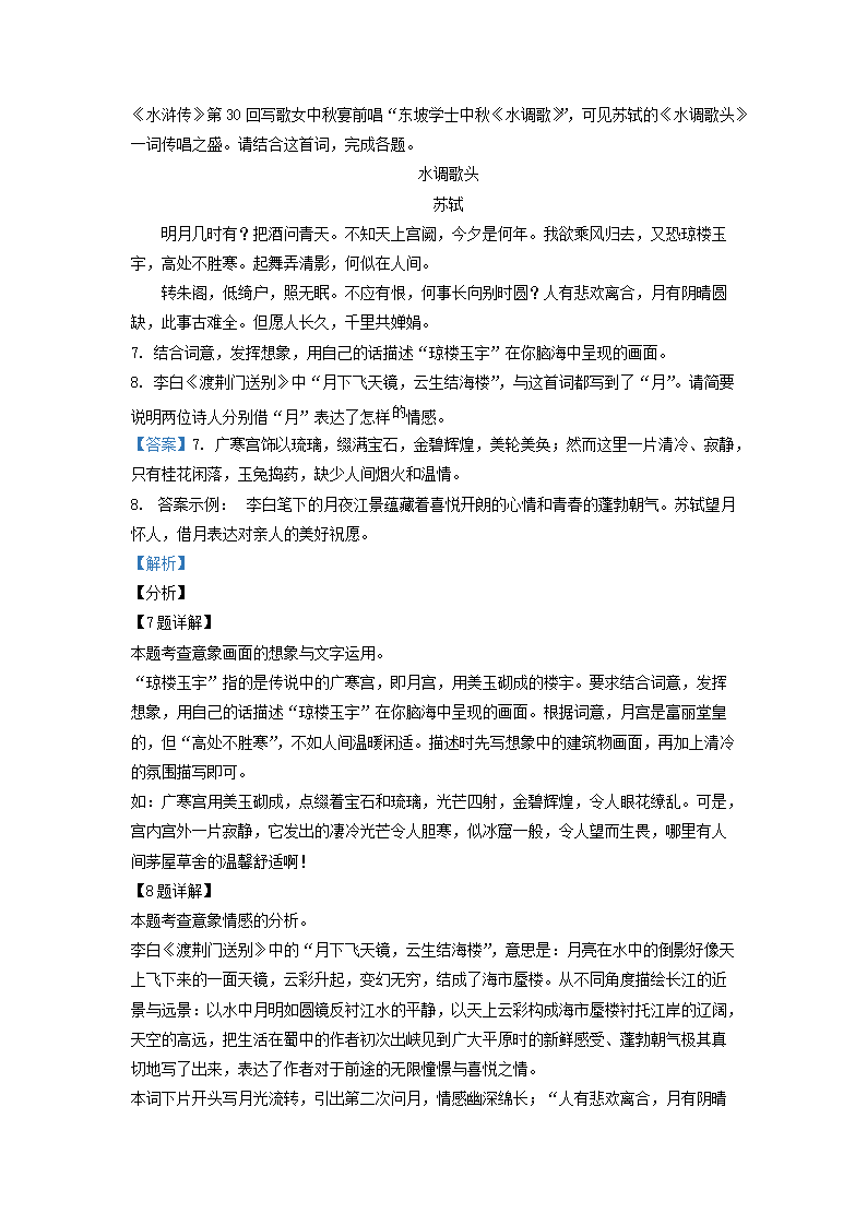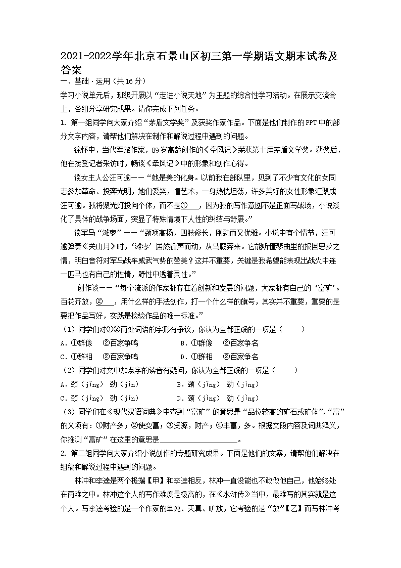 2021-2022学年北京石景山区初三第一学期语文期末试卷及答案(Word版)06-30
