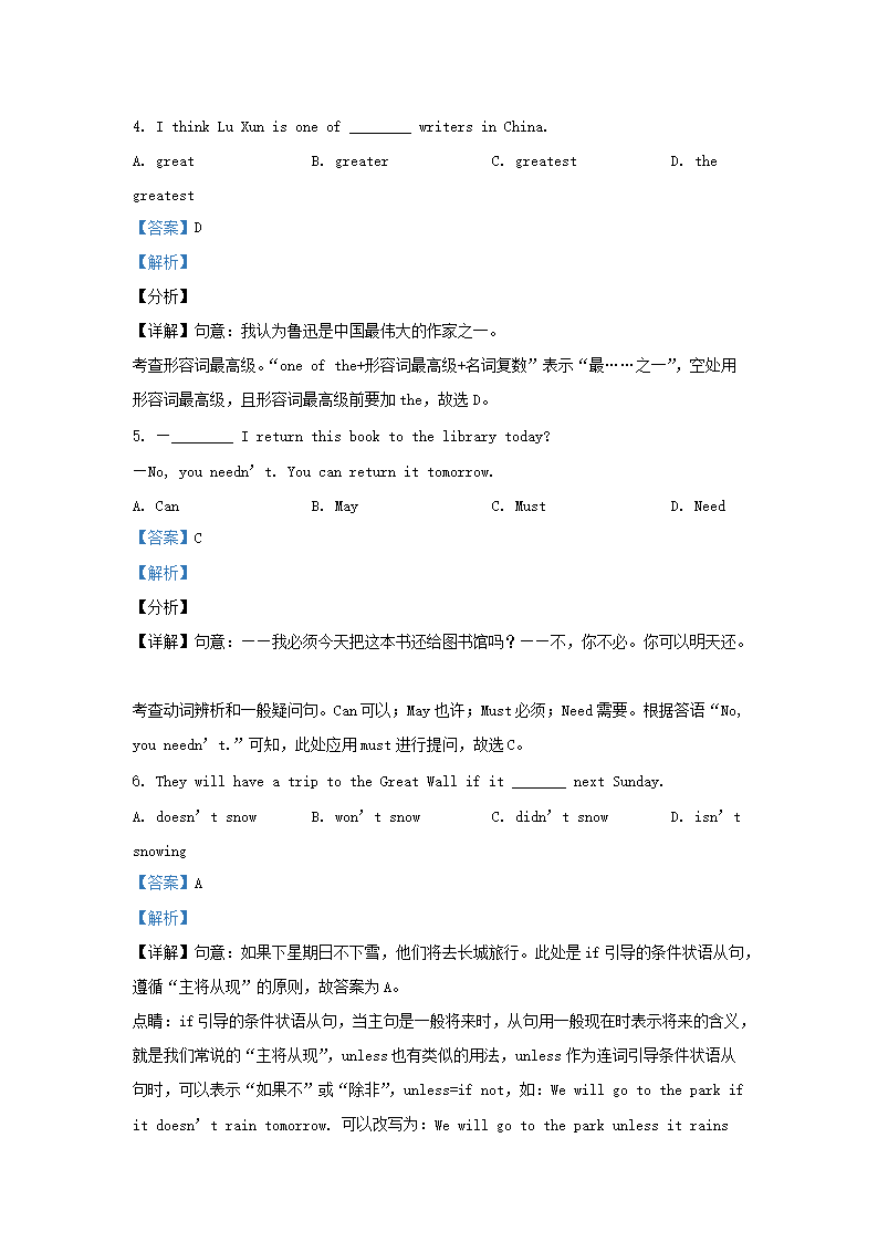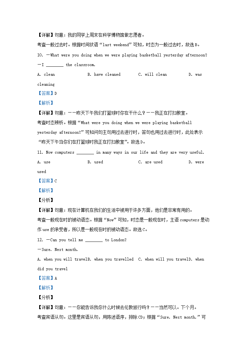 2021-2022学年北京房山区初三第一学期英语期末试卷及答案(Word版)08-15