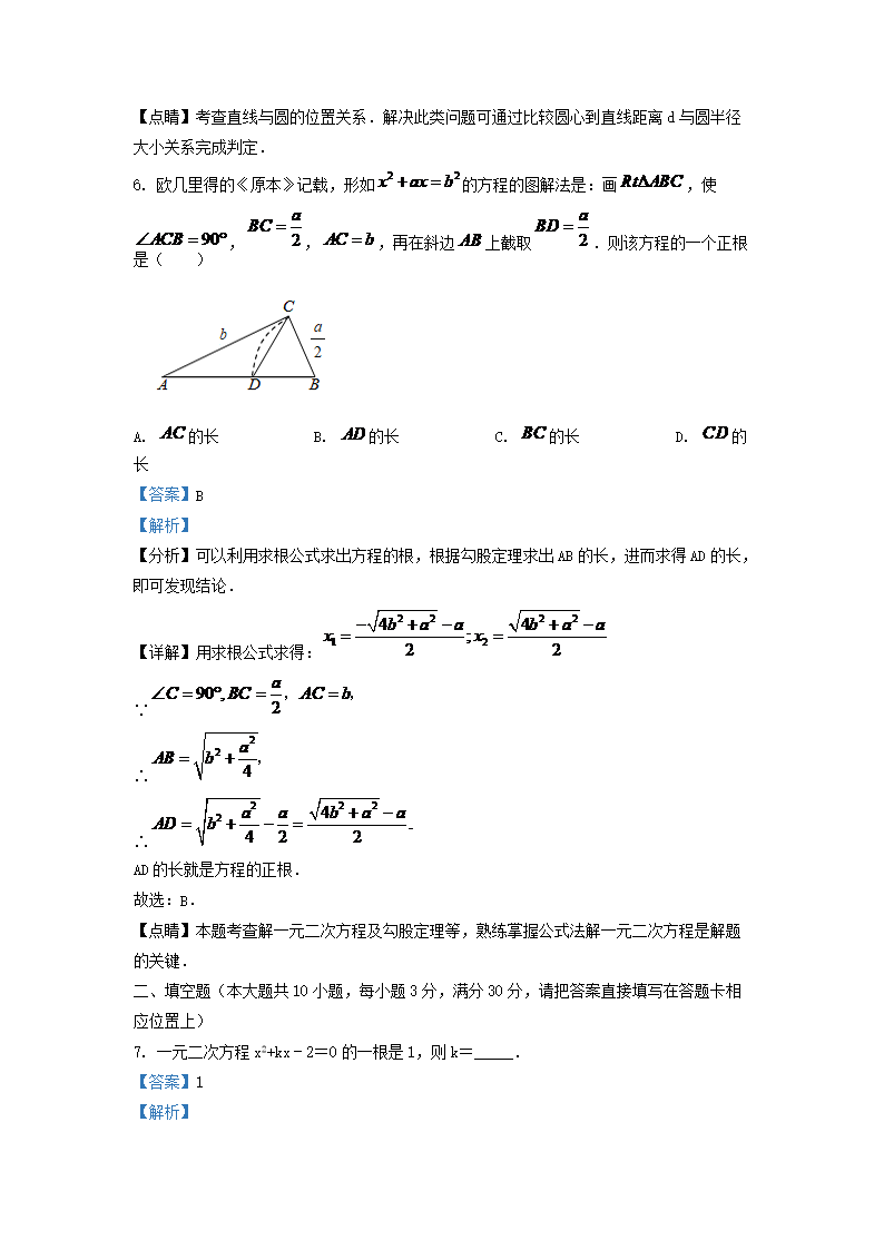 2020-2021学年江苏省泰州市海陵区九年级上学期数学期末试题及答案(Word版)09-28