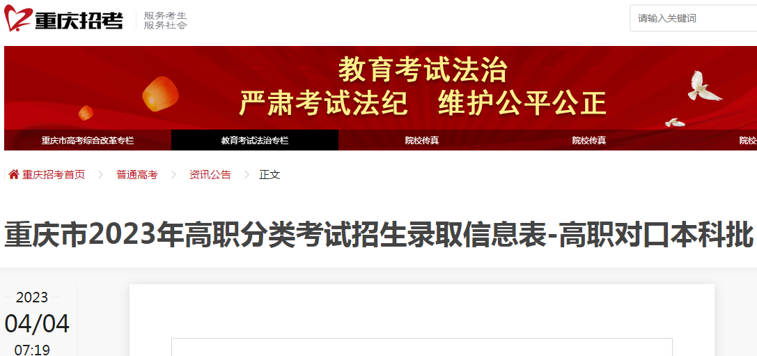 点击查看看:重庆市2023年高职分类考试招生录取信息表(高职对口本科批)