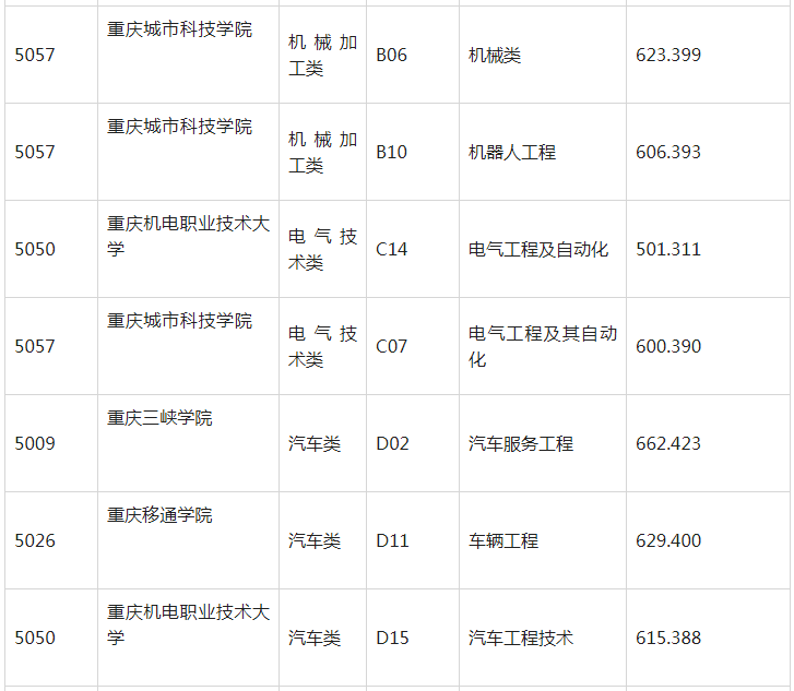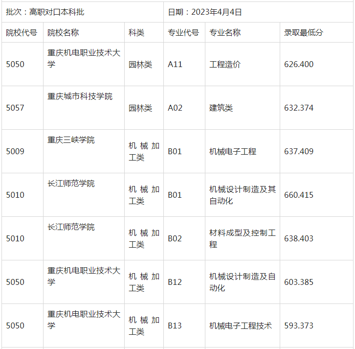 原文标题:重庆市2023年高职分类考试招生录取信息表-高职对口本科批