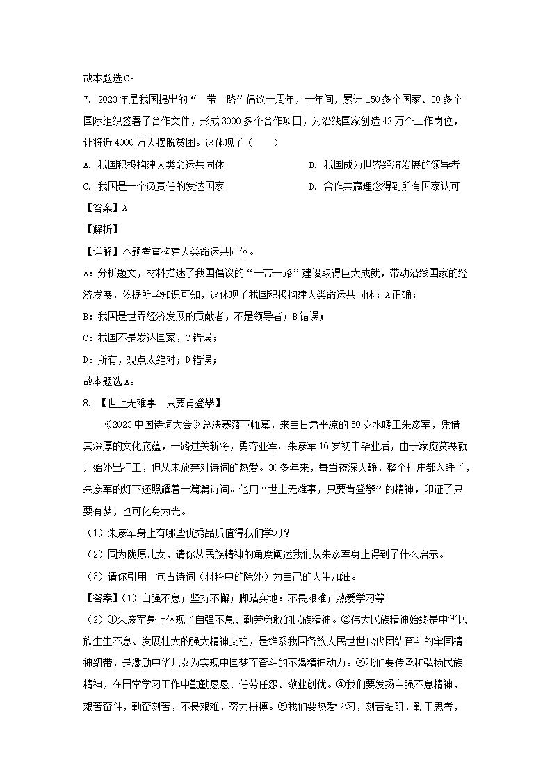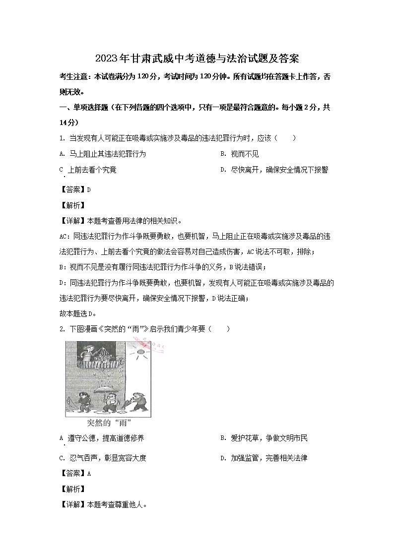 2023年甘肃武威中考道德与法治试题及答案(Word版)06-27
