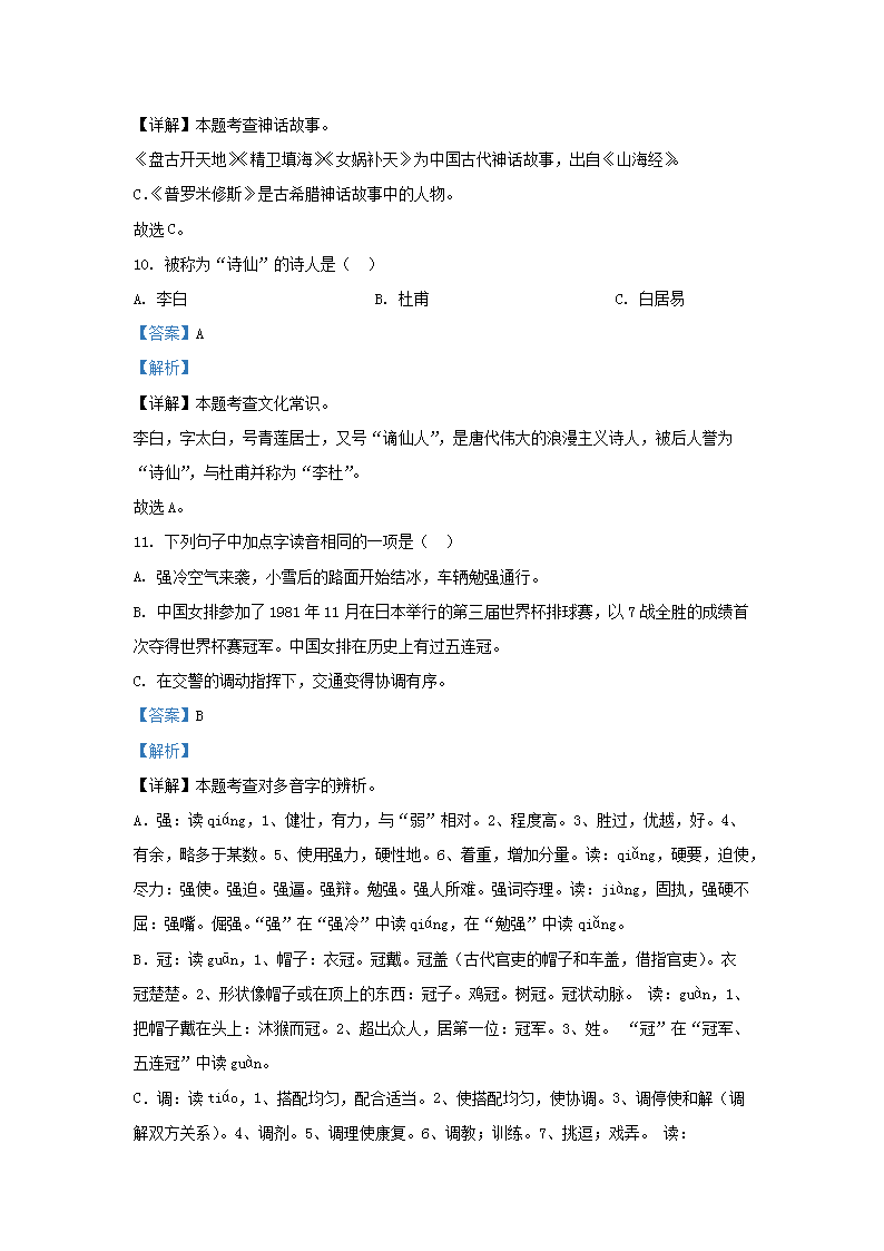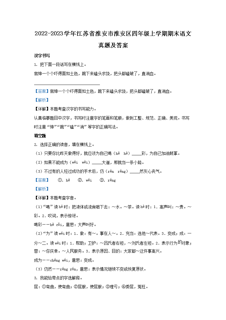 2022-2023学年江苏省淮安市淮安区四年级上学期期末语文真题及答案(Word版)09-15