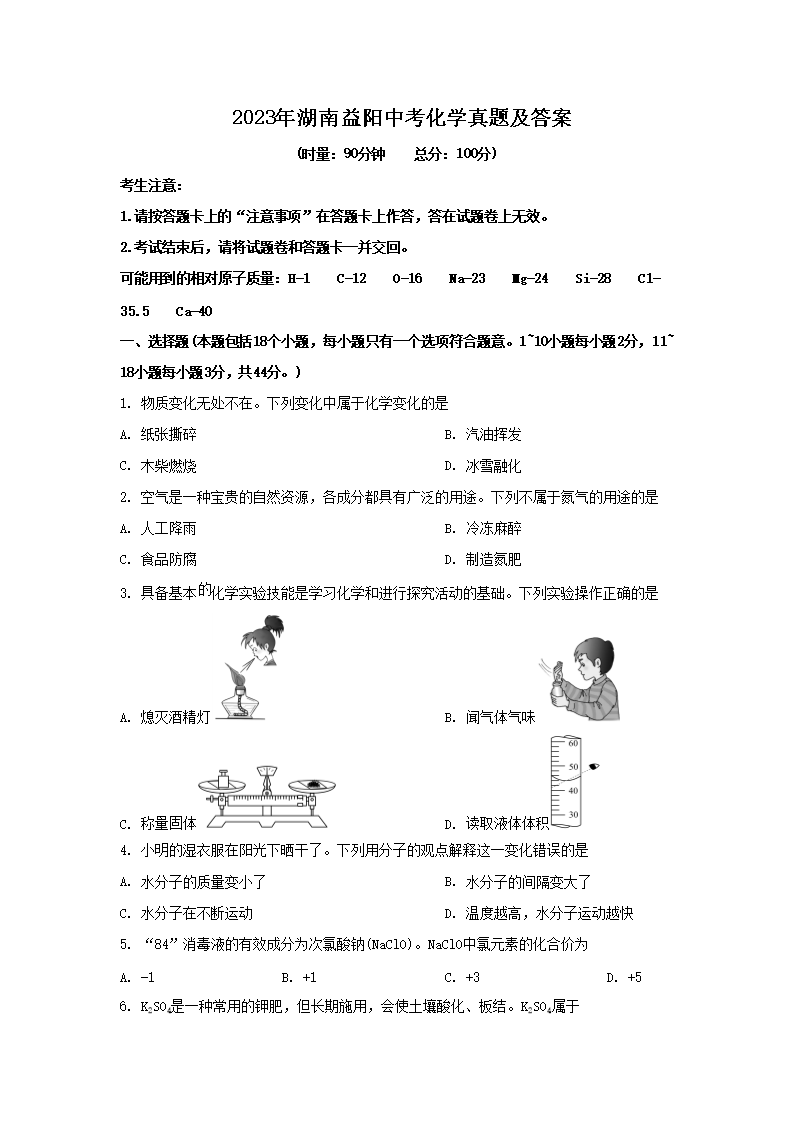 2023年湖南益阳中考化学真题及答案(Word版)07-19
