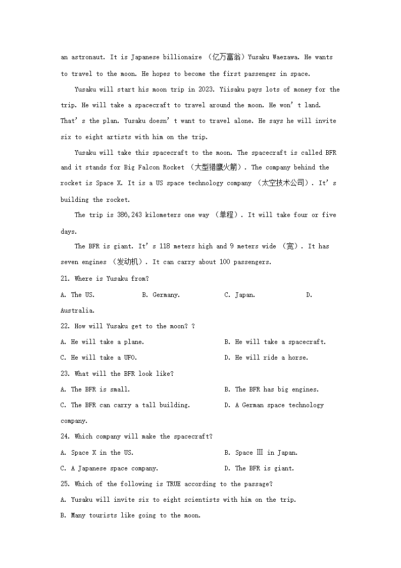 2020-2021学年广东深圳龙华区七年级上册期末英语试卷及答案(Word版)09-26