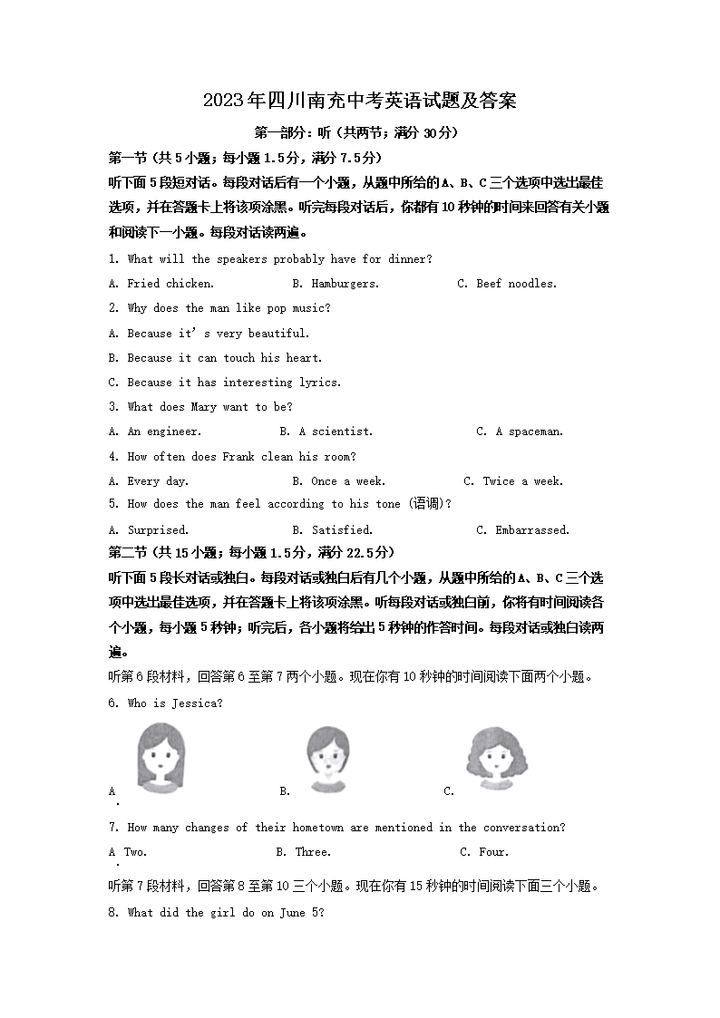 【文档预览】 文档大全网整理发布2023年四川南充中考英语试题及答案(Word版),前五页预览如下: