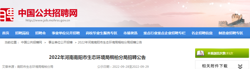 原文标题:2022年河南南阳市生态环境局桐柏分局招聘公告