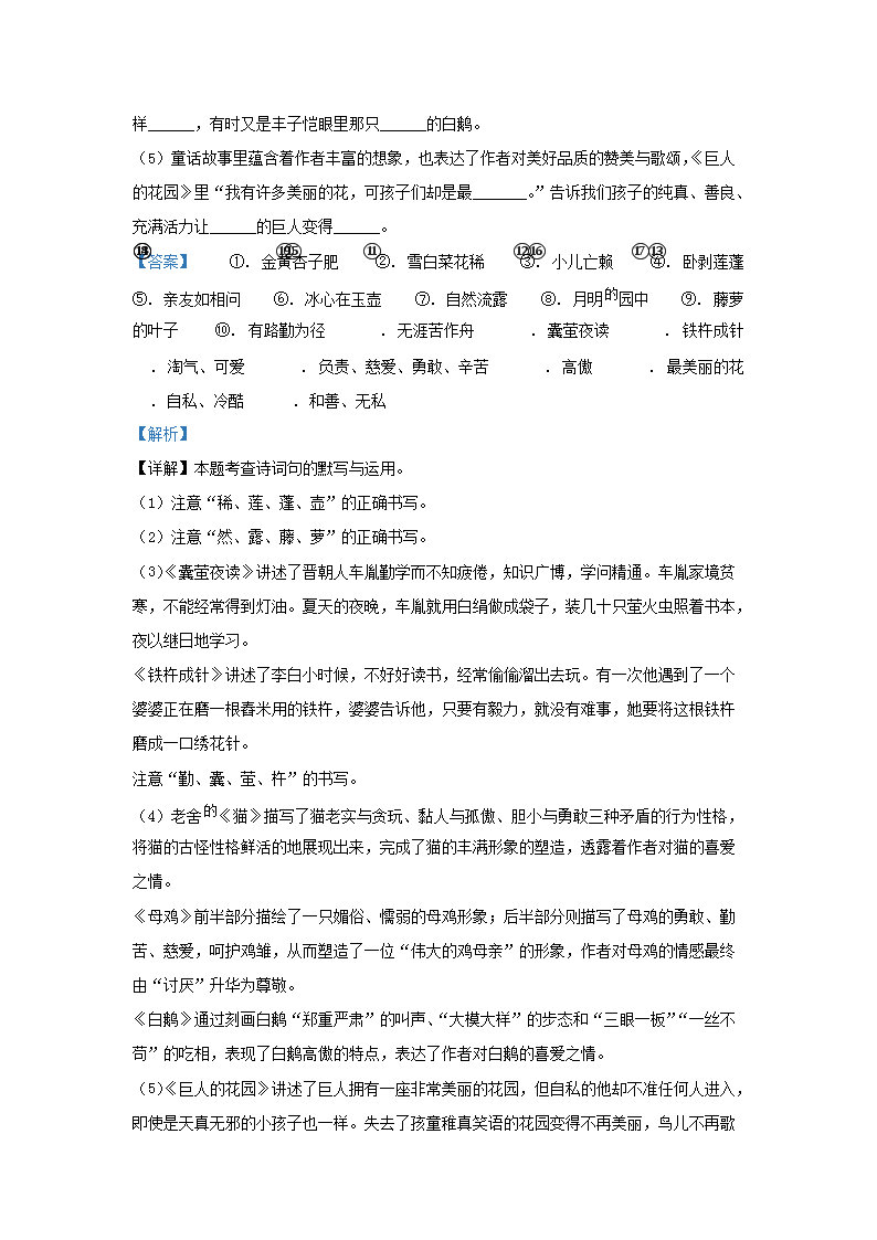 小学四年级上册语文阅读练习题及答案【五篇】07-08