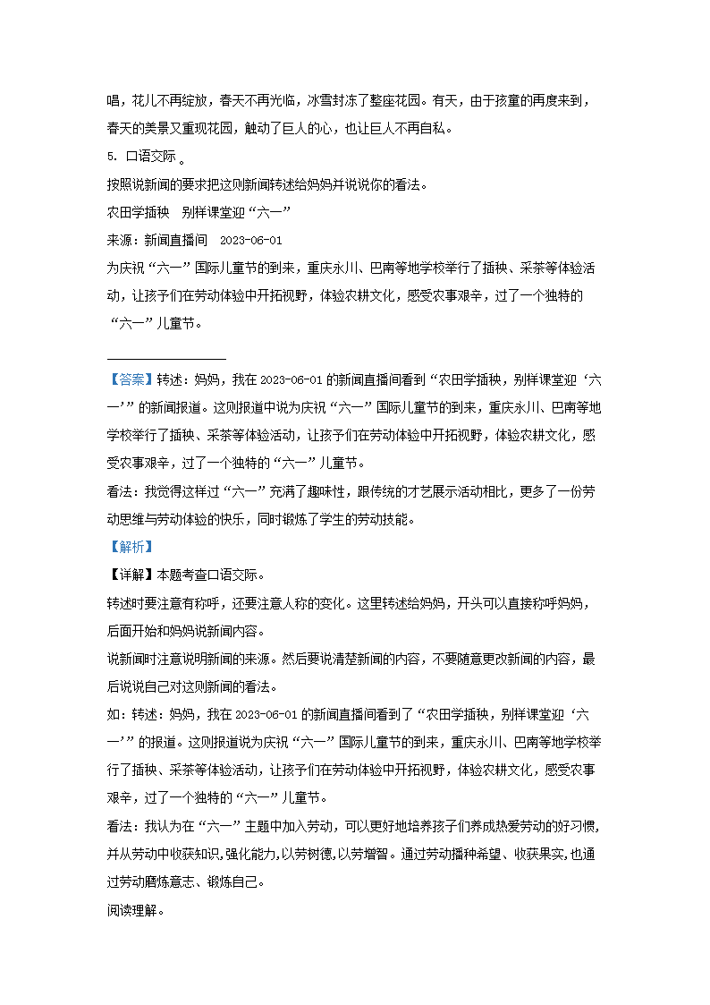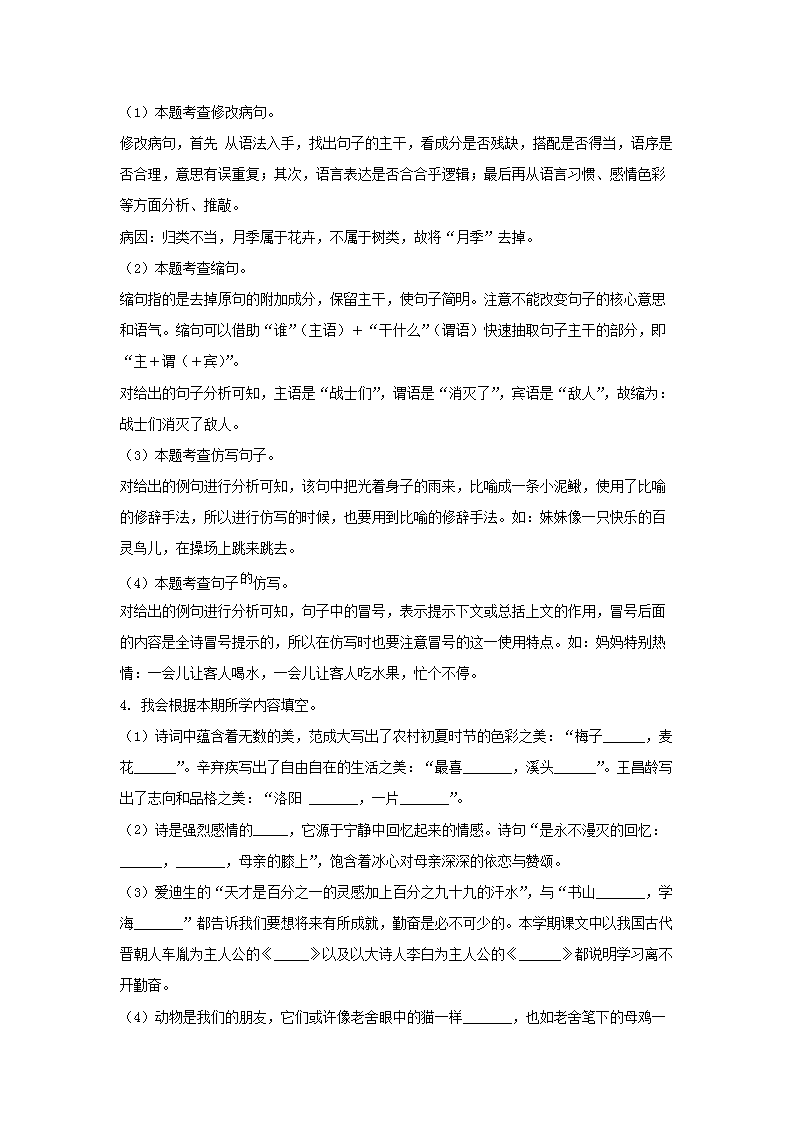 2022-2023学年湖南省娄底市新化县四年级下学期期末语文真题及答案(Word版)10-25