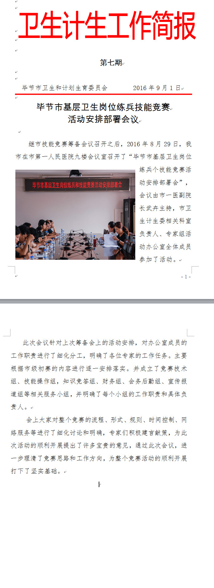 贵州毕节市基层卫生岗位练兵技能竞赛活动安排部署会议