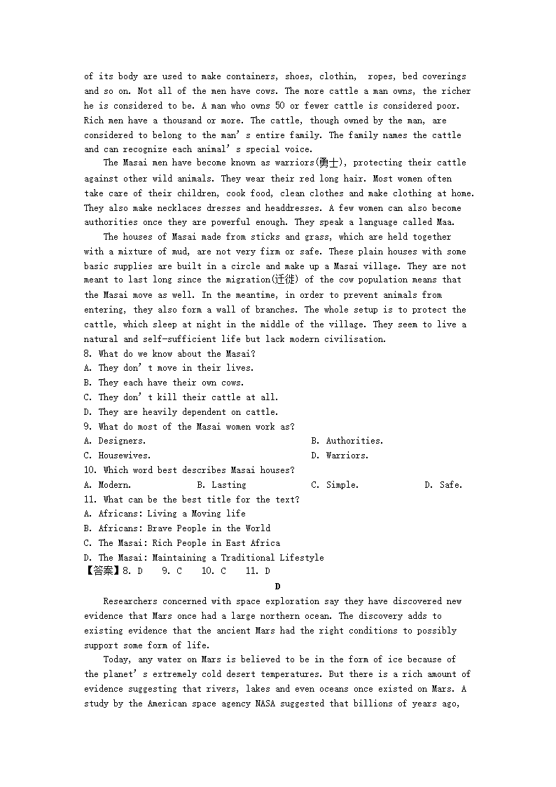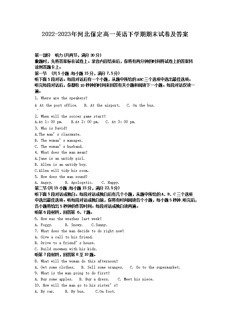 2022-2023年河北保定高一英语下学期期末试卷及答案(Word版)10-20