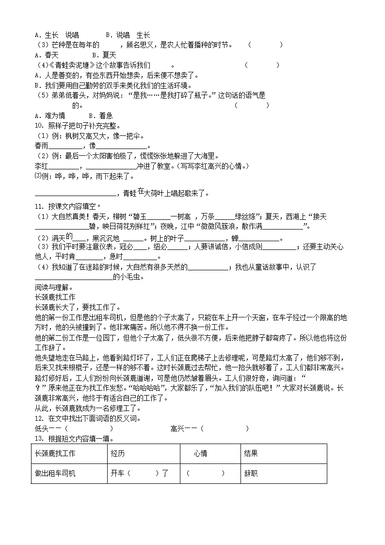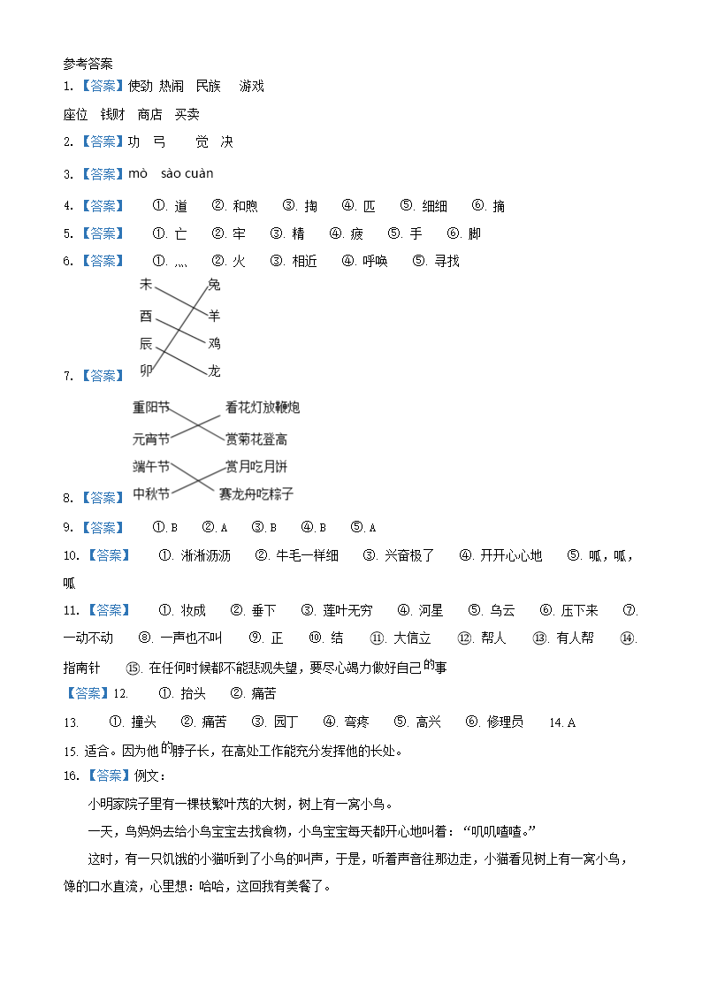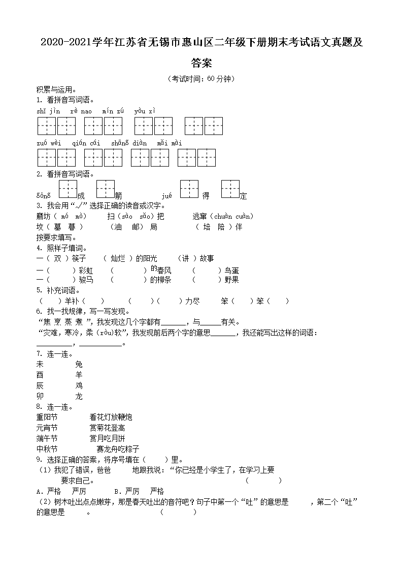 2020-2021学年江苏省无锡市惠山区二年级下册期末考试语文真题及答案(Word版)08-30