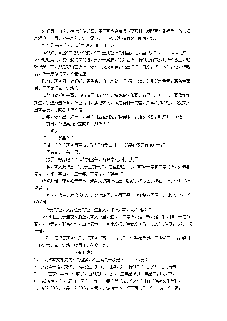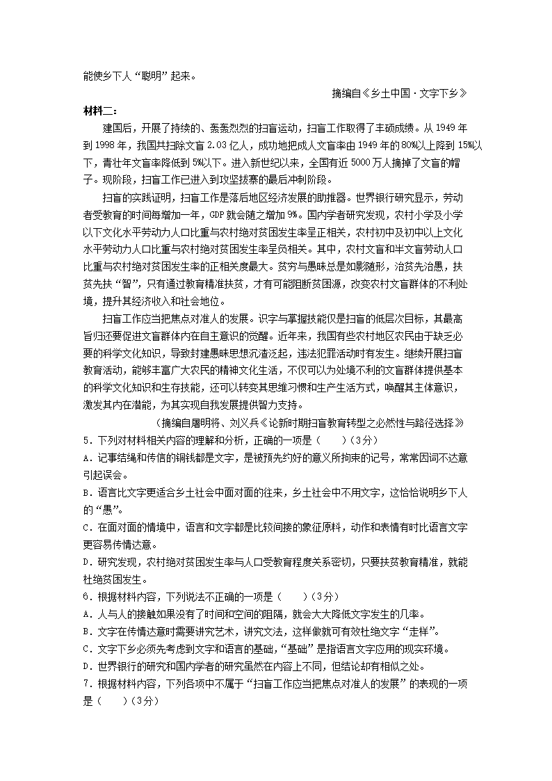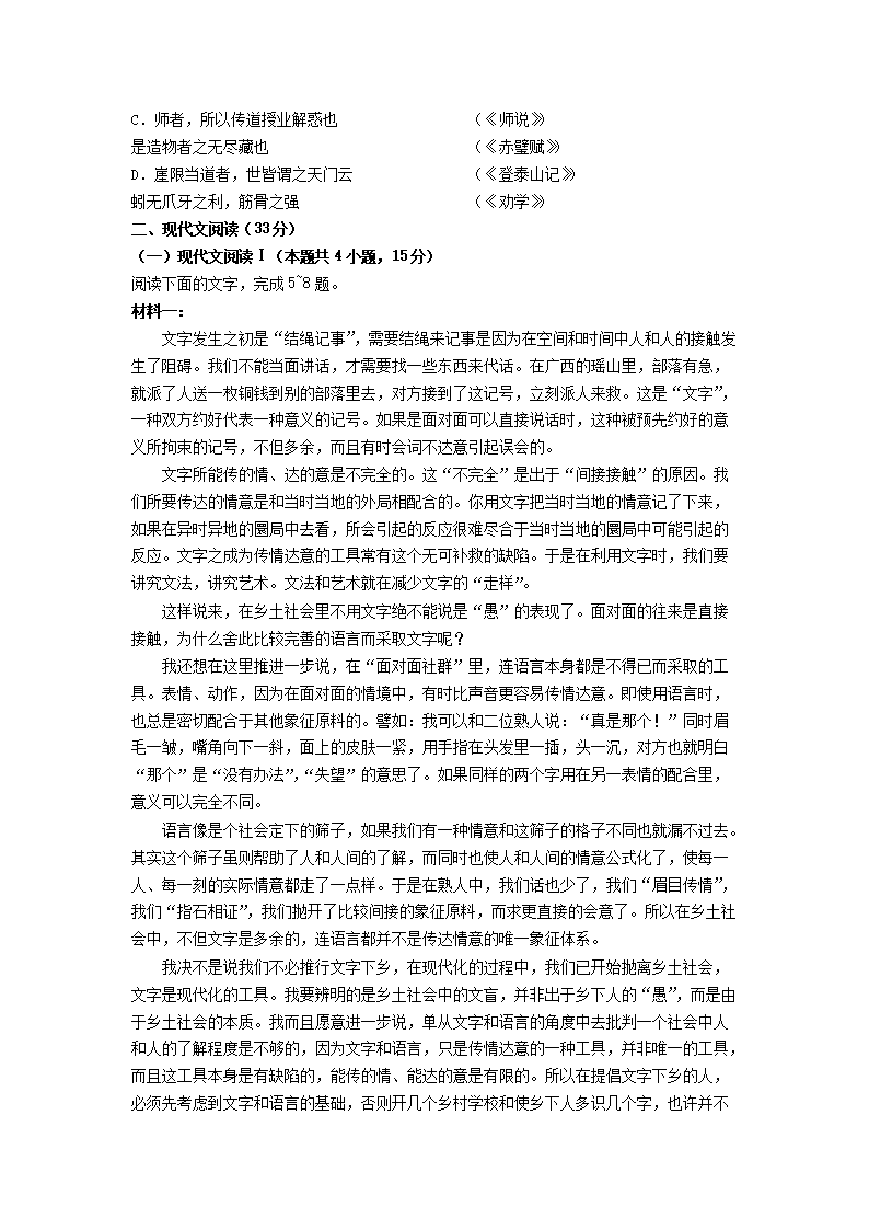 2021-2022年河北唐山高一语文上学期期末试卷及答案(Word版)08-31