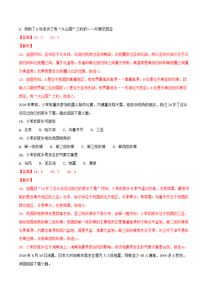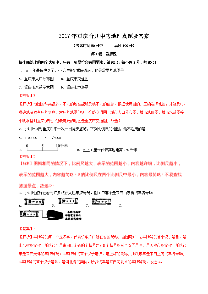 2017年重庆合川中考地理真题及答案(Word版)06-01