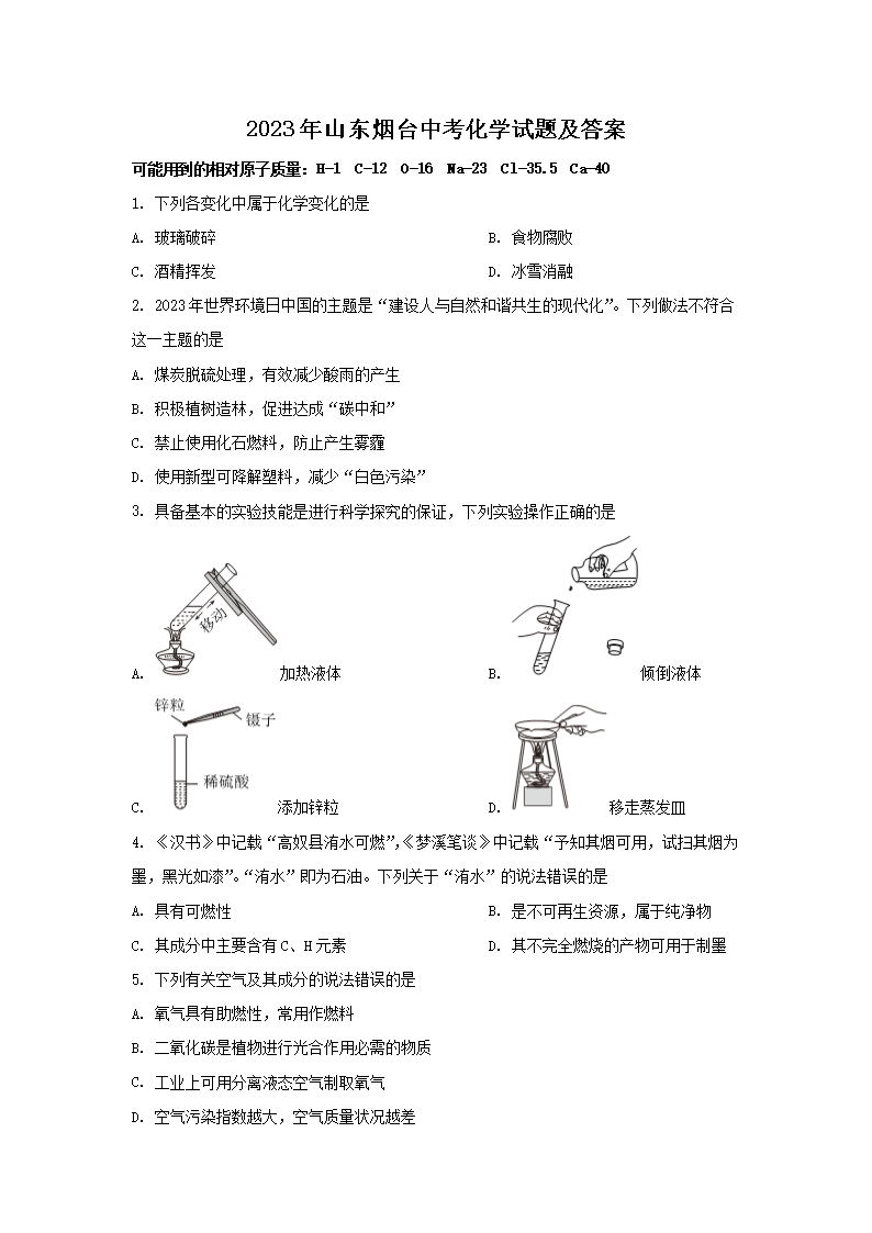 2023年山东烟台中考化学试题及答案(Word版)07-26