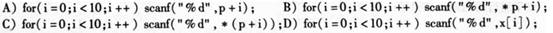 29、 设有定义:int X[10],+P=x,i;,若要为数组x读人数据,以下选项正确的是( )。 ![]()