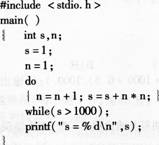 9、 以下程序拟实现计算s=1+2*2+3*3+…+n*n+…,直到s>1000为止。