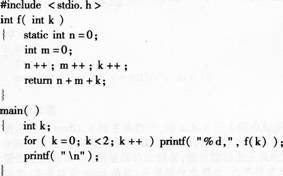 2、 输出语句:prinff(”%d\n”,ll+011);的输出结果是( )。