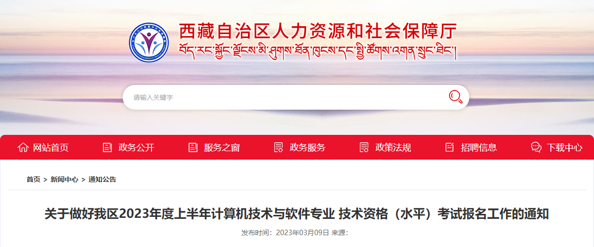 2023上半年西藏计算机技术与软件专业技术资格(水平)考试工作通知03-18