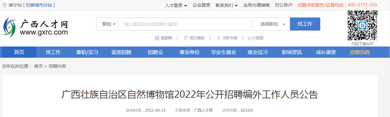 2022年广西壮族自治区自然博物馆招聘编外人员公告09-24