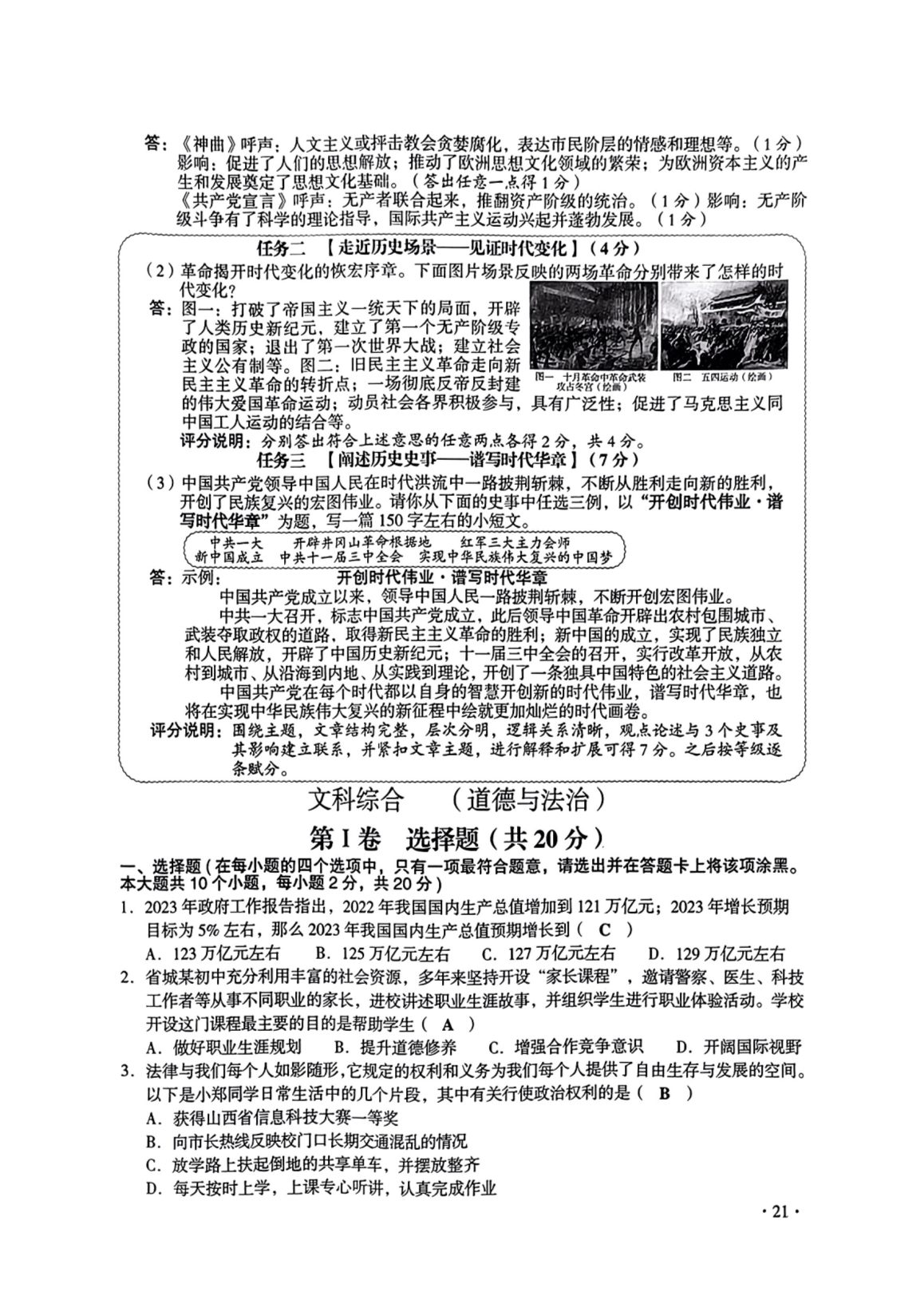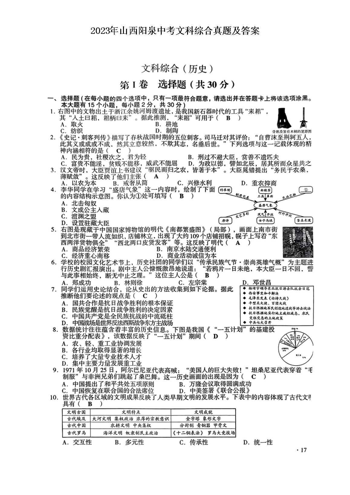 【文档预览】 文档大全网整理发布2023年山西阳泉中考文科综合真题及答案(图片版),前五页预览如下: