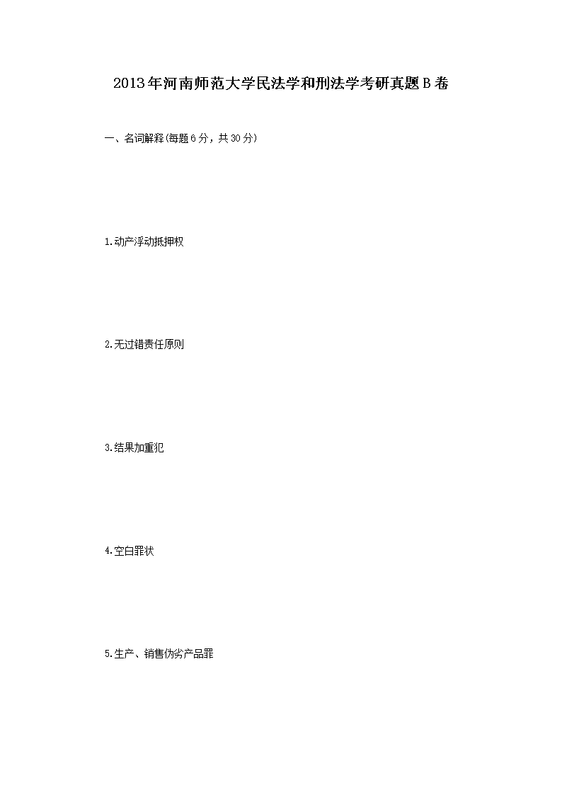 2013年河南师范大学民法学和刑法学考研真题B卷(Word版)06-15