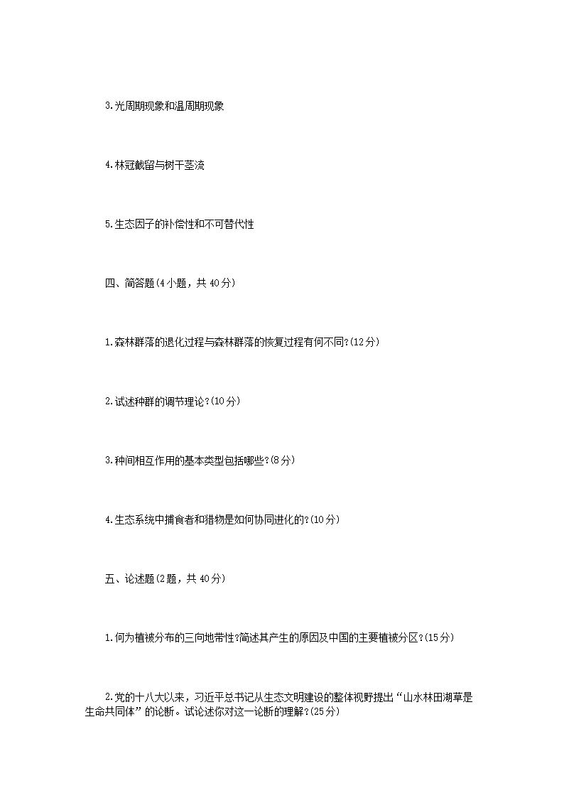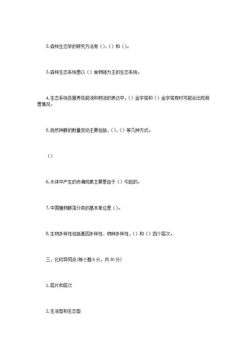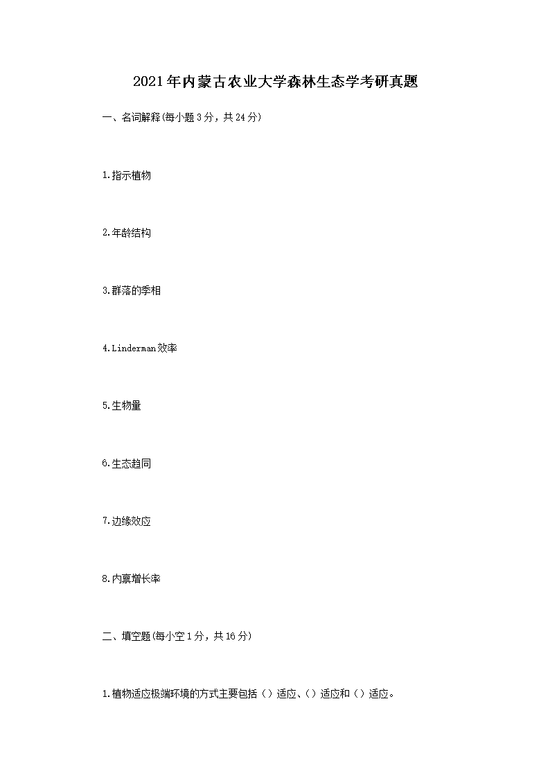 2021年内蒙古农业大学森林生态学考研真题(Word版)07-06