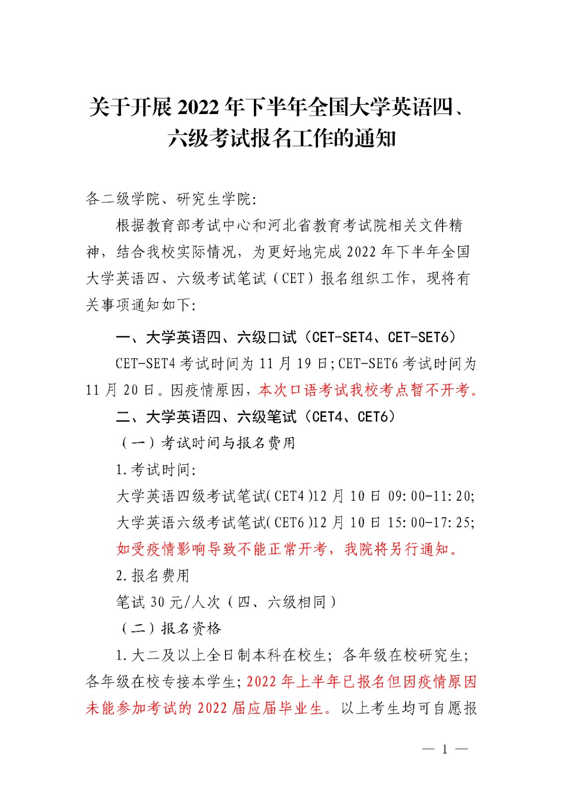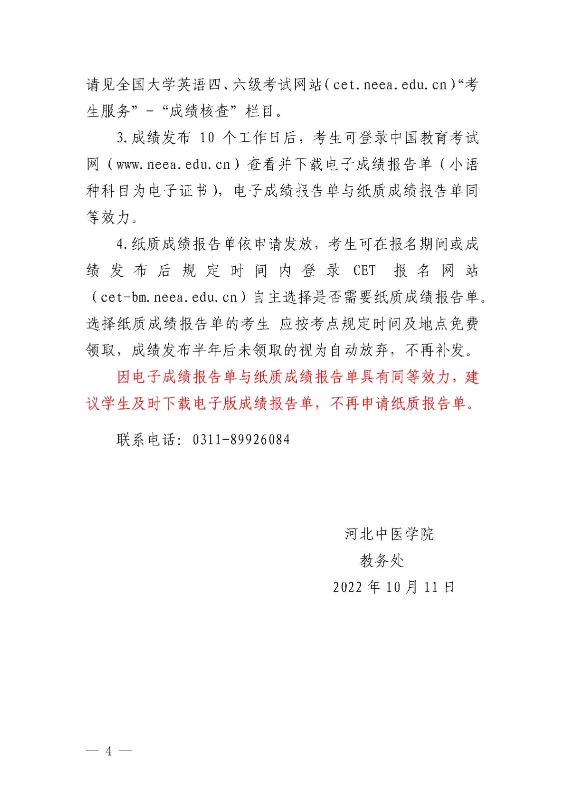 2022年下半年河北中医学院英语四、六级考试报名工作的通知10-14