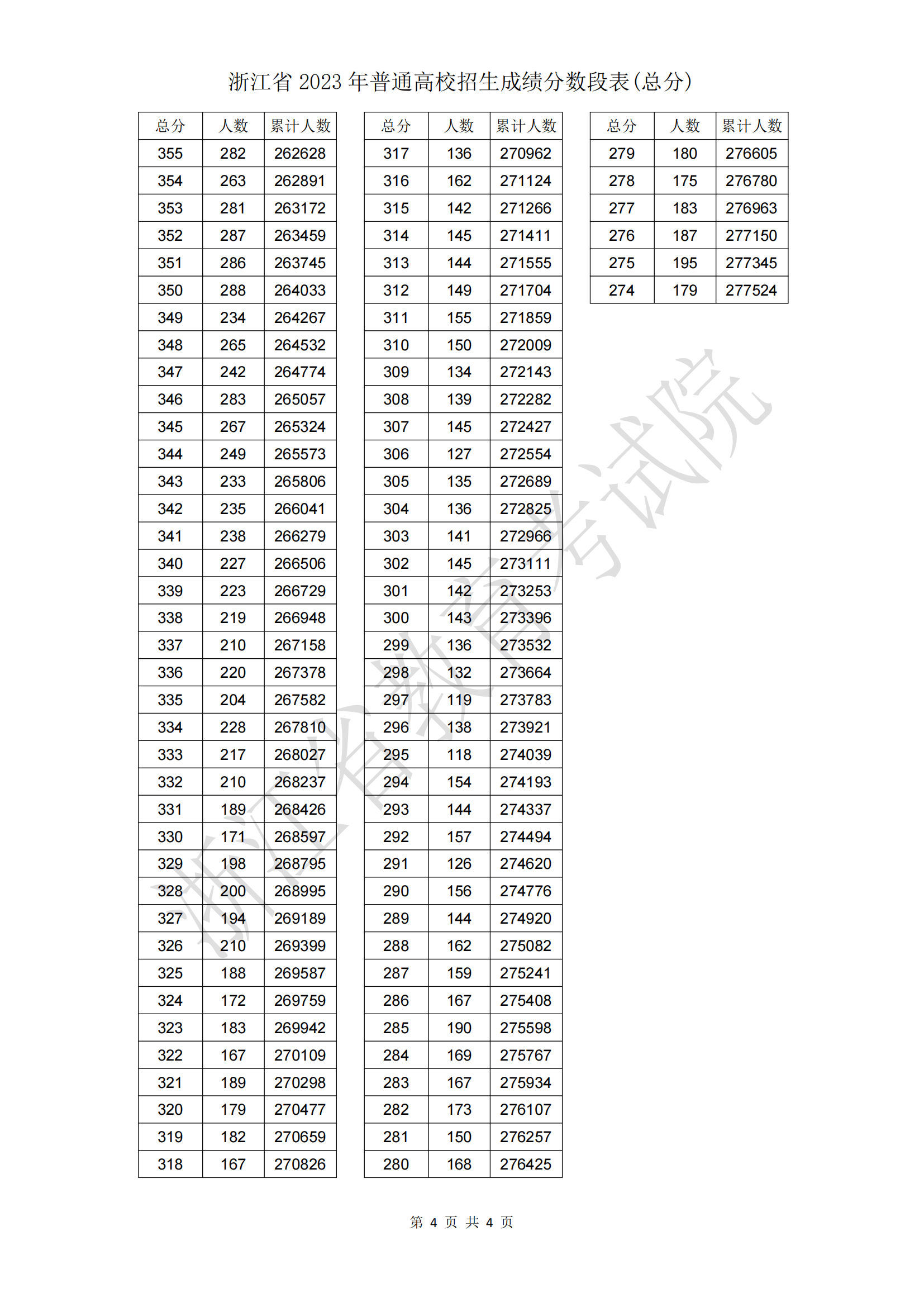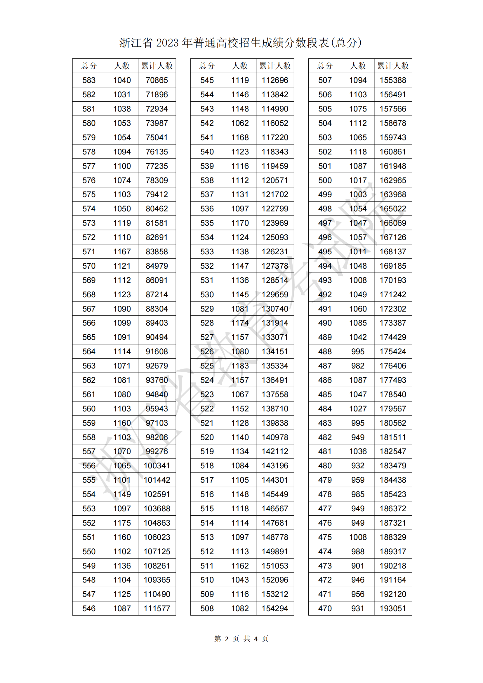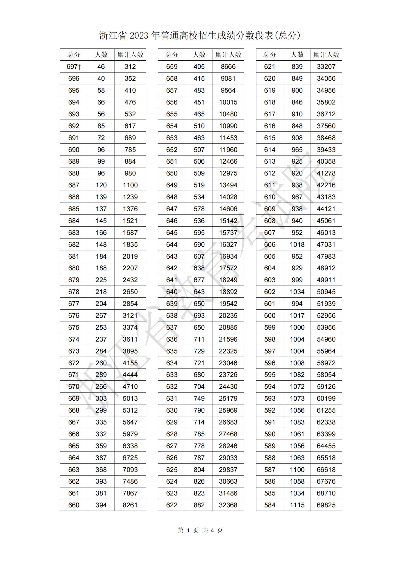 浙江省2023年普通高校招生成绩分数段表(总分)06-28