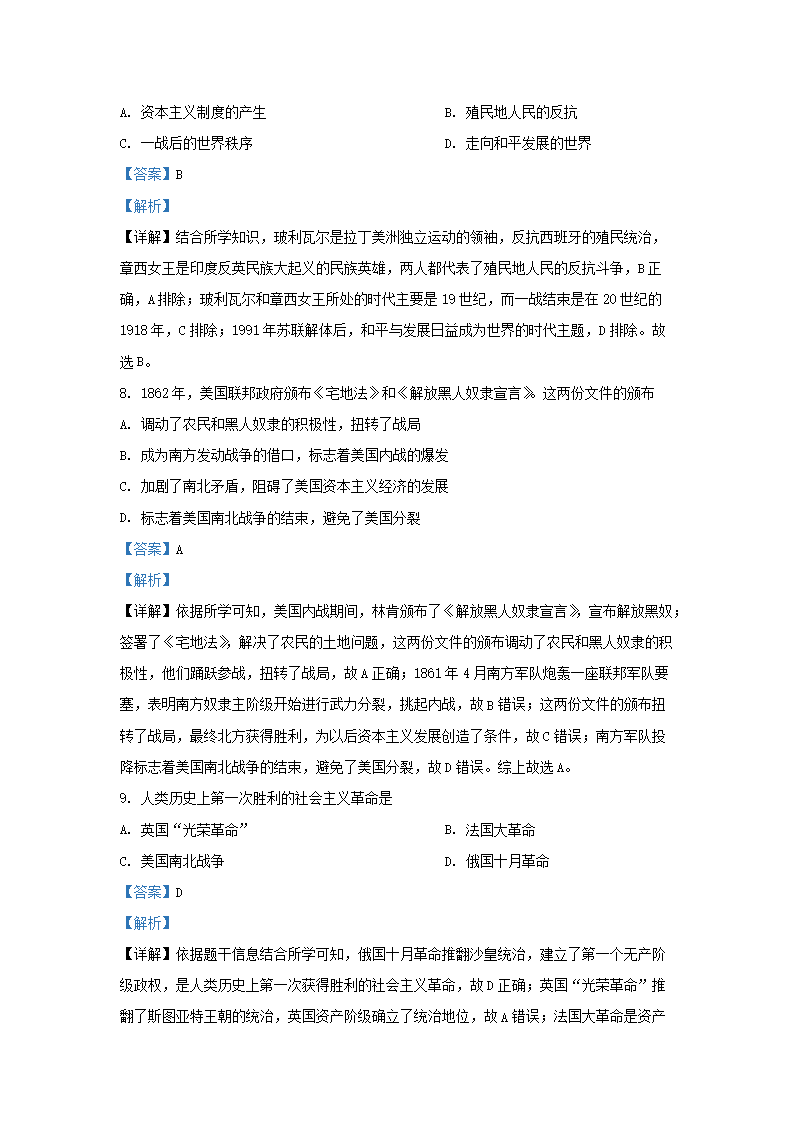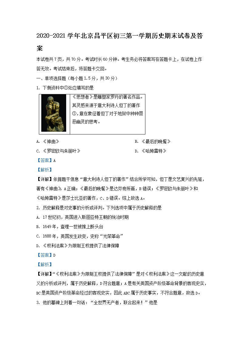 2020-2021学年北京昌平区初三第一学期历史期末试卷及答案(Word版)07-19