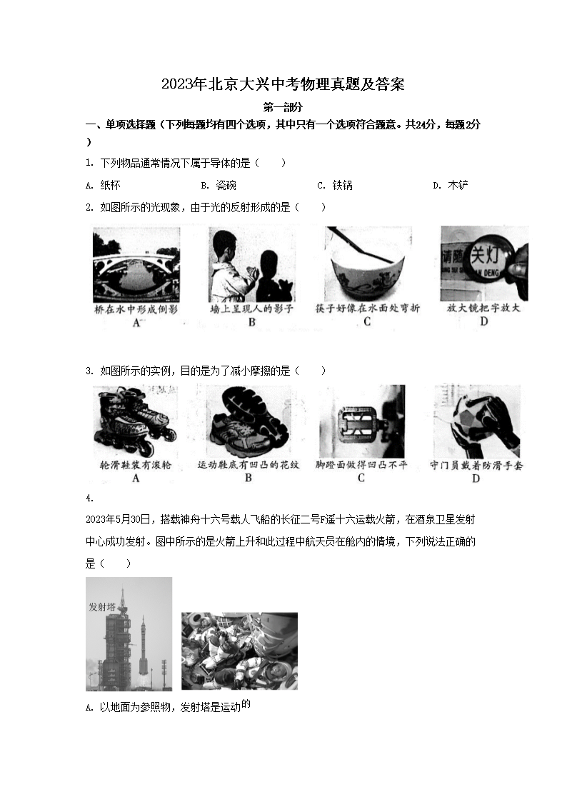 2023年北京大兴中考物理真题及答案(Word版)07-12