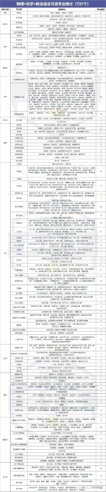 物化政组合是最新选科指引下的王牌组合,专业覆盖率,专业选择面最广,共有737个专业可选;