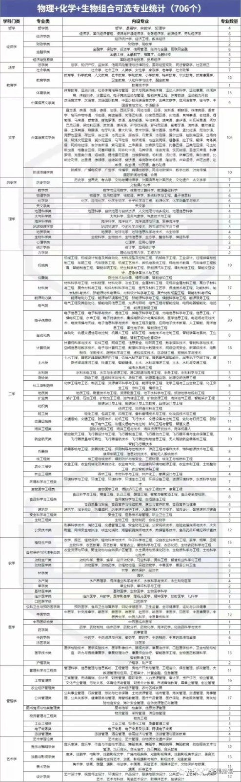 物化的组合专业覆盖面也较广,可报考专业门类多,理科、工科类的热门专业都可以报考,此外经济类、管理类、农学类、医学也在选择之列。