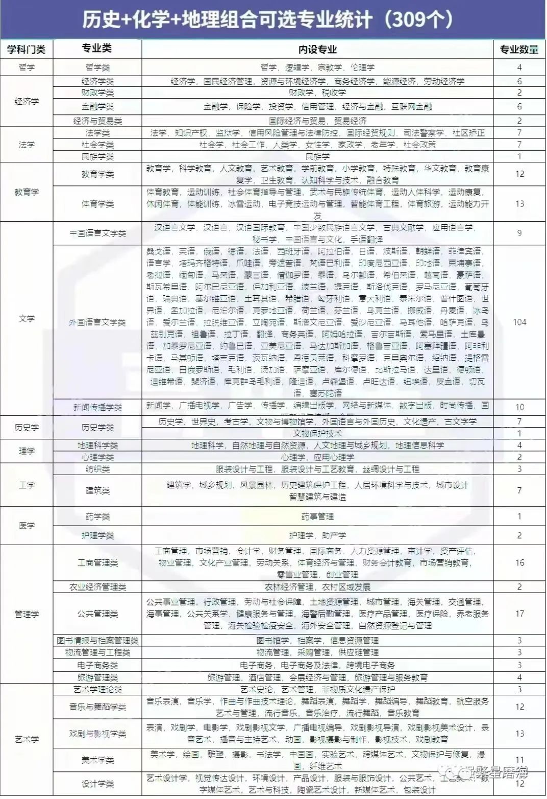 分析及建议:“历史+地理+化学”个组合适合物理不擅长、政治不喜欢,或擅长以记忆为主,动手能力强,文字表达好的学生,学科似乎跨度小但思维跨度大,竞争非常激烈,地理要和学物理的过招,化学、生物要和学物理的比拼,选择该组合的人要慎重。