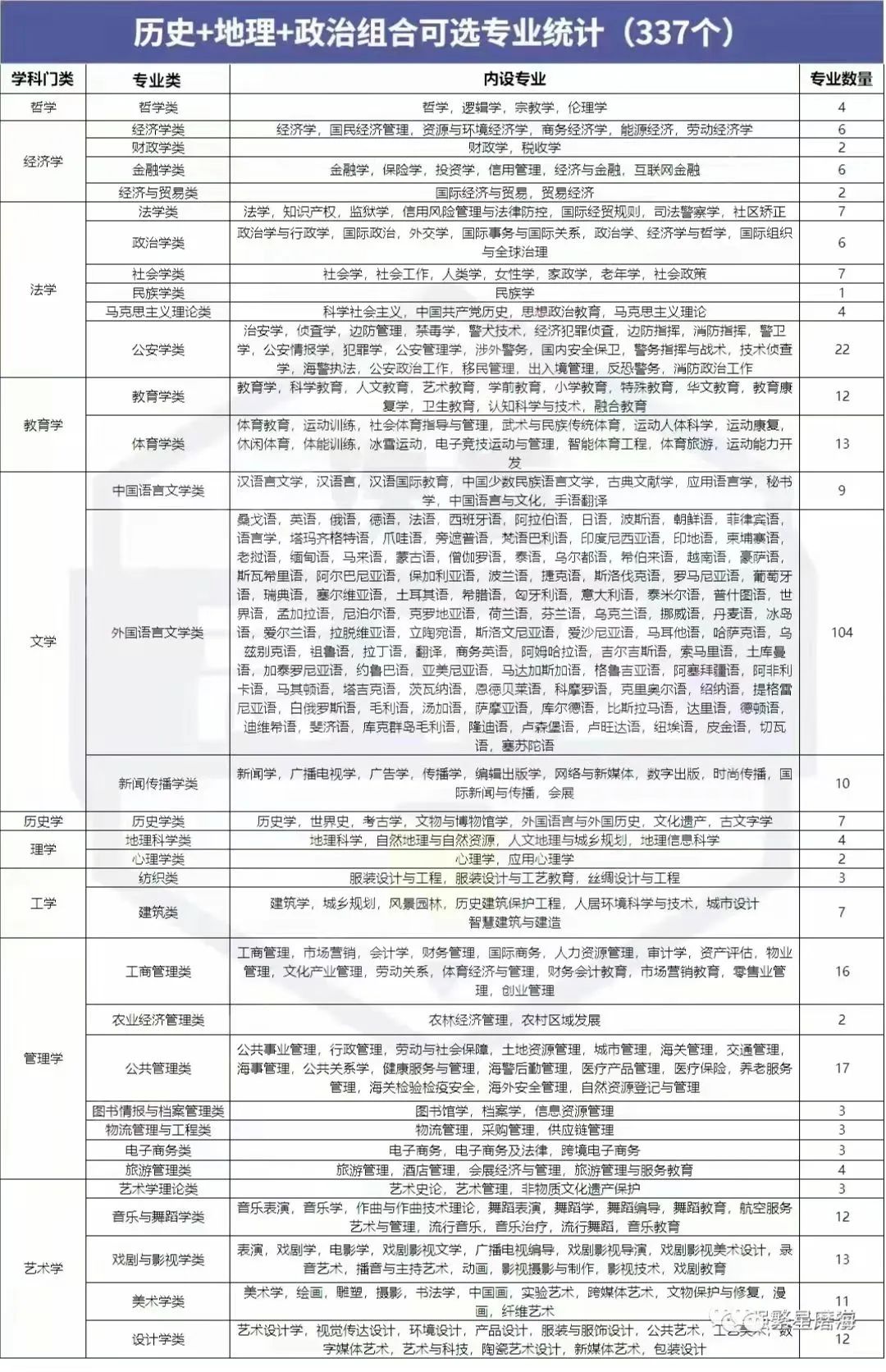 分析及建议:选这个组合的学生有明显特点:有文科偏好但对地理学科不感兴趣。因为有了一门理科的加入,拓宽了专业选择面。