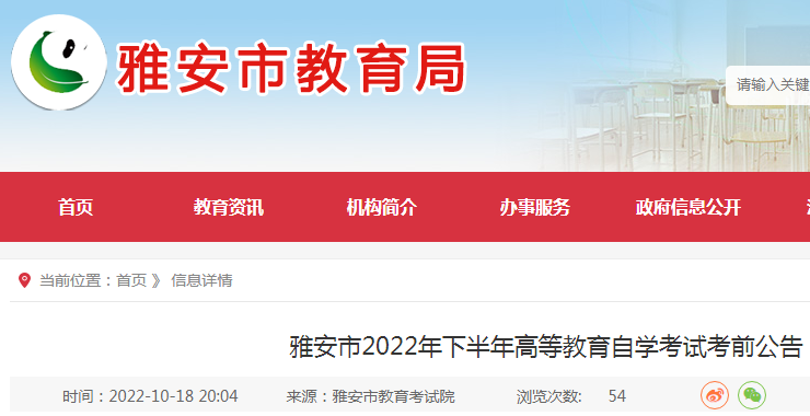 【#自考# 导语】®文档大全网自考频道从雅安市教育局了解到,四川雅安2022年下半年自学考试考前公告已发布,详情如下:
