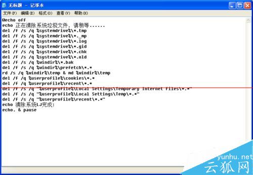4、现在我们弄一个批处理文件,专门清理系统垃圾的。