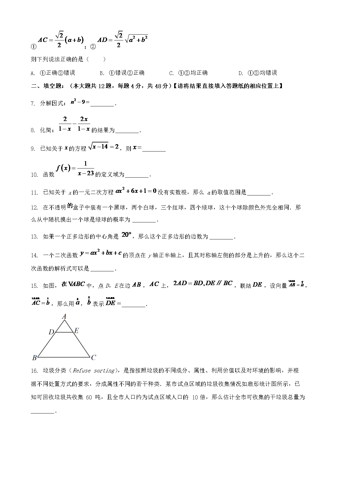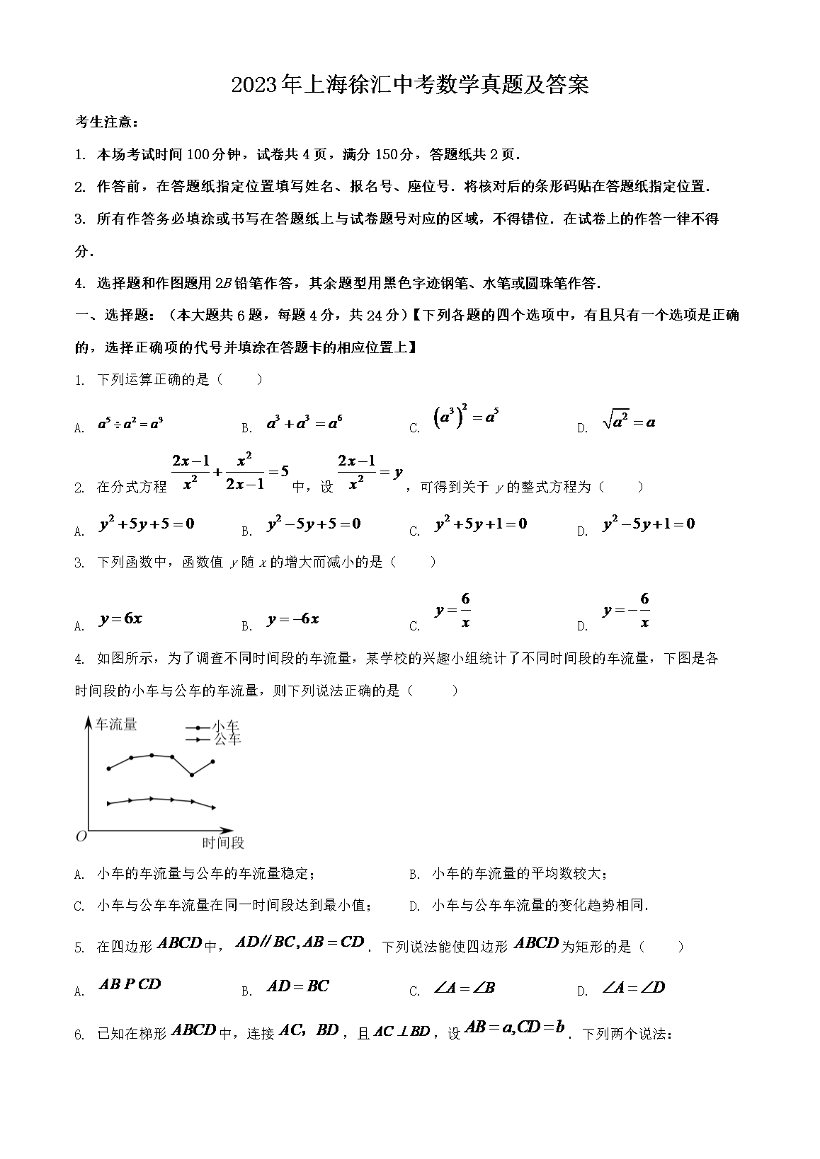 2023年上海徐汇中考数学真题及答案(Word版)06-22
