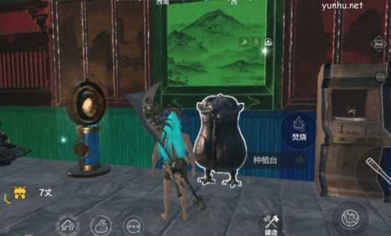 1、来到家园里的种植台前,同时按下焚烧键和右上角的哨子键位