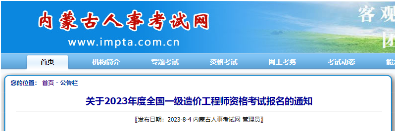 2023年内蒙古一级造价工程师考试时间:10月28日-29日08-10