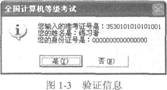 步骤3:考生输入自己的准考证号,并对系统弹出的自己的姓名、身份证号等信息进行复核。如不正确,单击“否”重新输入;如正确,单击“是”进入下一环节,如图l-3所示。
