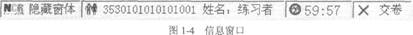 在整个考试过程中,“考试界面”窗口的上方始终会显示一个“考试信息条”,如图1-4所示。“考试信息条”显示着考生的个人信息、考试剩余时间。“考试信息条”还有两个按钮: