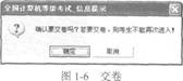 考试时间一到,考试系统会自动终止,考生将无法继续考试,之前的操作会被视作交卷;若提前交卷,则需使用“考生信息条”中的“交卷”按钮,如图l-6所示。