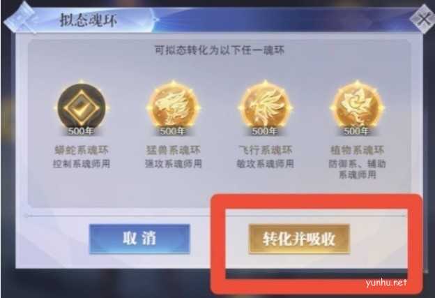 4、我们确定转换并吸收这样就完成了斗罗大陆魂师对决魂环的转换。