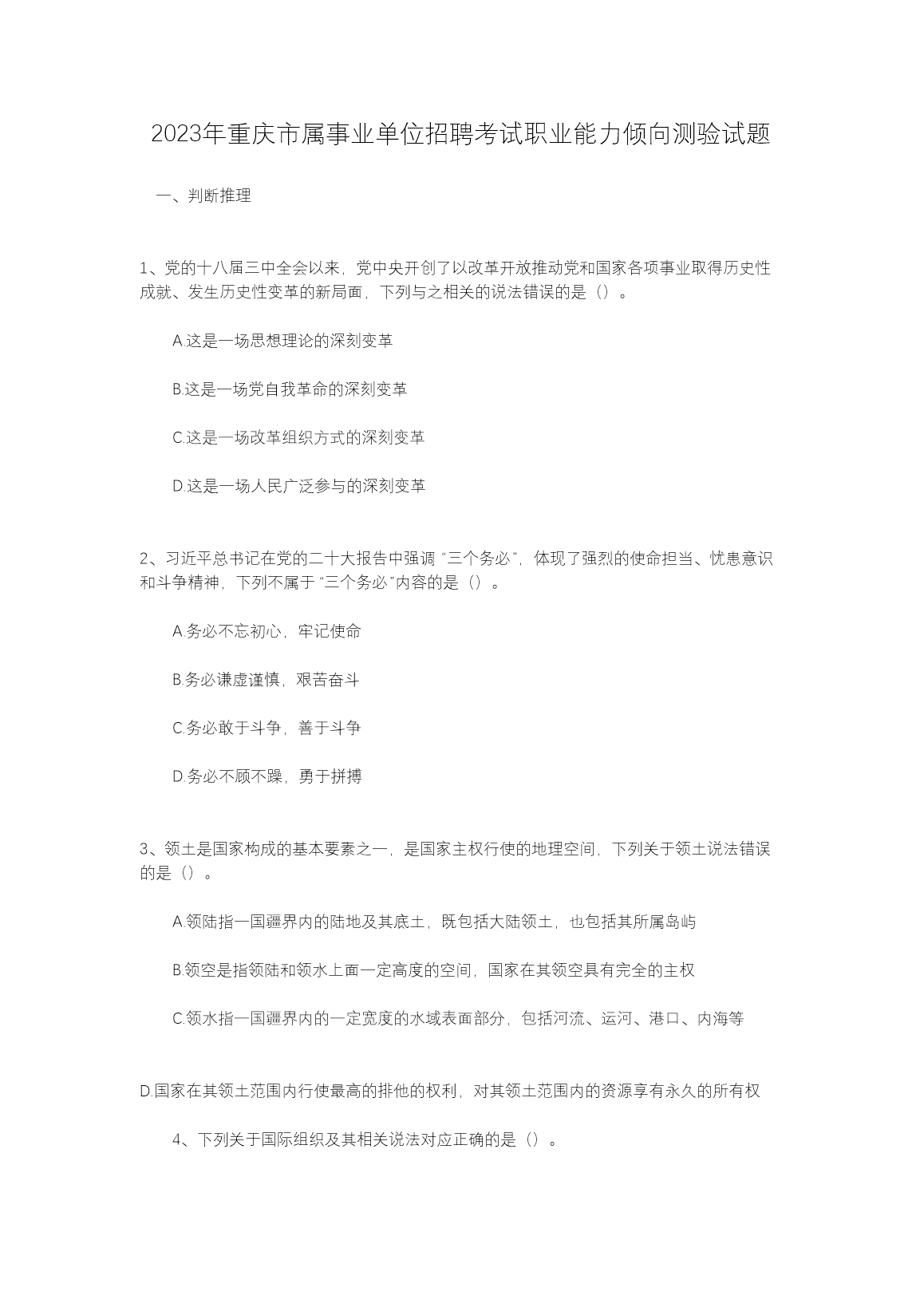 2023年重庆市属事业单位招聘考试职业能力倾向测验试题(Word版)10-09