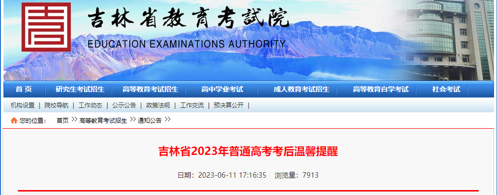 原文标题:吉林省2023年普通高考考后温馨提醒
