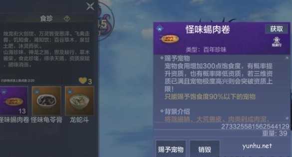 【资质±变化】提高或降低资质,与珍味菜品级别有关,喂食万年级别珍味菜品必然不会减少资质哦~