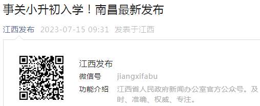 江西南昌2023年小升初入学信息核验时间:7月17日-27日07-18