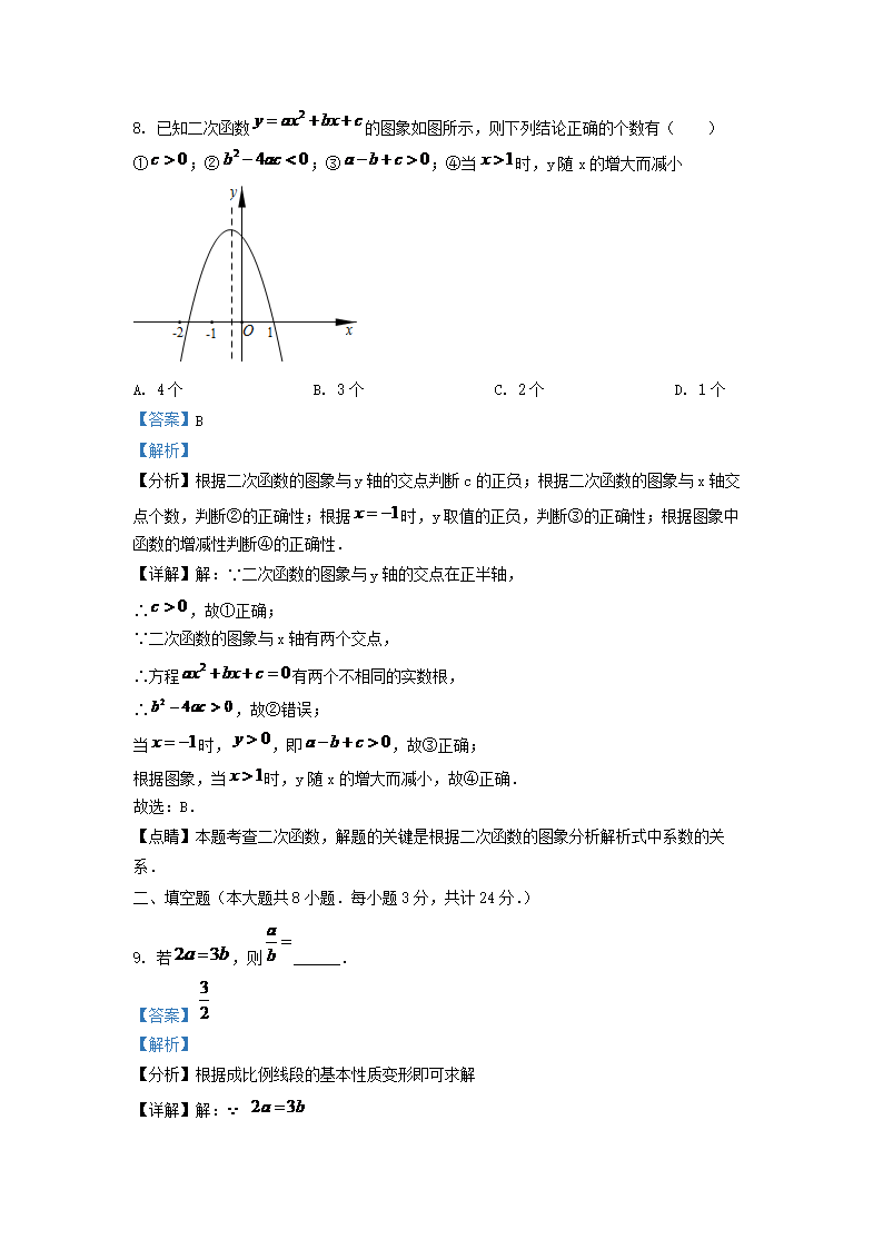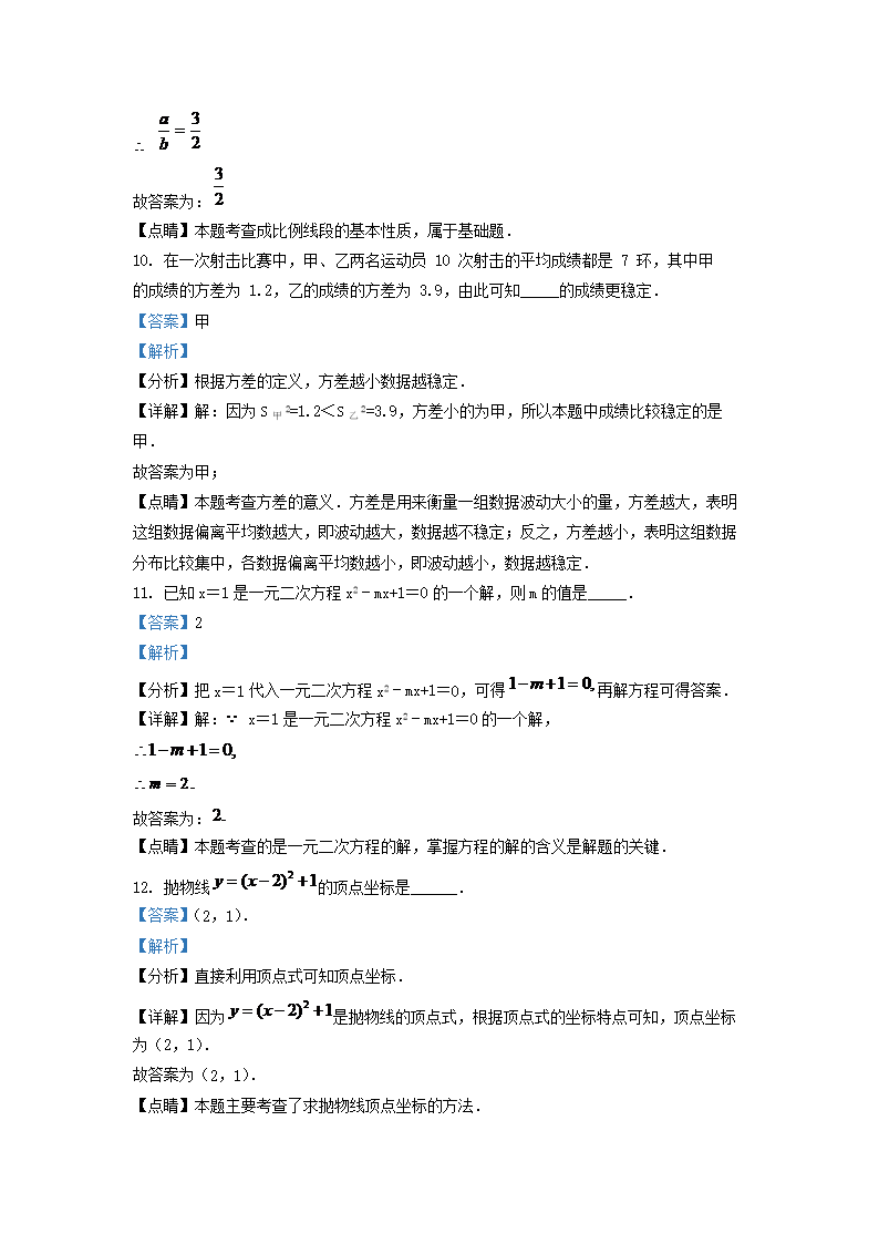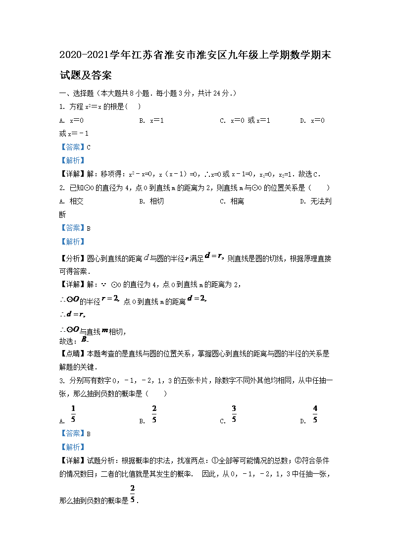 2020-2021学年江苏省淮安市淮安区九年级上学期数学期末试题及答案(Word版)09-27