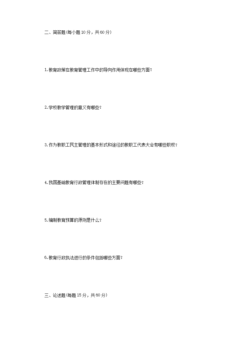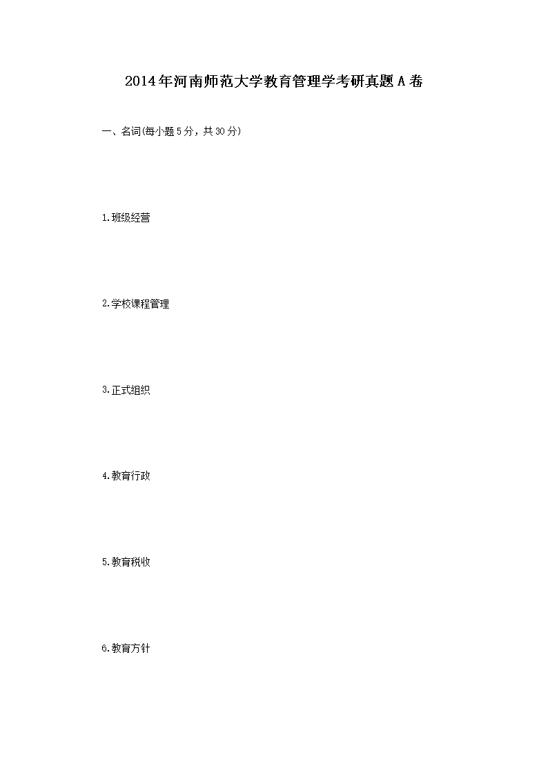 2014年河南师范大学教育管理学考研真题A卷(Word版)06-08